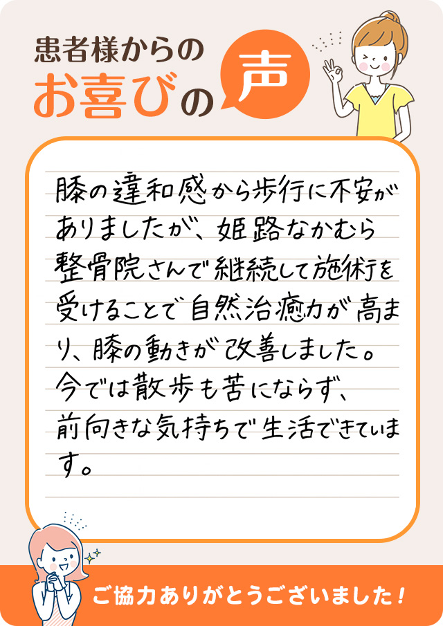 膝の痛みでお悩みの方は、ぜひ一度、姫路市東辻井の姫路なかむら整骨院へご相談ください。痛みの根本原因に対処する施術で、再び自信を持って歩ける日常をサポートいたします。